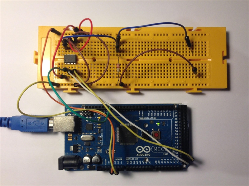 Dado que los elementos que componen el hardware del sistema no son muy numerosos, se montará el circuito sobre una placa de prototipado (‘protoboard’), sin llegar a trasladarlo a una PCB. El Arduino, el conversor y la resistencia se interconectan con los cables "jumper". También se utilizarán estos cables para conectar el cable serie a los puertos TX0 y TX1 del Arduino. El Arduino quedará conectado al puerto USB ya que lo utilizaremos para alimentar el circuito. Por último, se conecta el otro extremo del cable serie al iPad y el osciloscopio a los extremos de la resistencia de cargar para poder visualizar las señales.