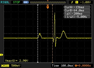 El panel de control del ritmo sinusal puede dividirse en cuatro partes: ● Botón RS para activar el ritmo sinusal. ● Control de temporización de la señal: frecuencia cardiaca, intervalo PR e intervalo QT. ● Control de amplitud de las diferentes partes de la señal cardiaca: onda P, complejo QRS y onda T. ● Control de amplitud de la señal total. En la siguiente imagen se muestra un ejemplo de un ritmo sinusal con un intervalo PR de 200 milisegundos. A la izquierda se muestra la pantalla del iPad y a la derecha la señal medida en el osciloscopio